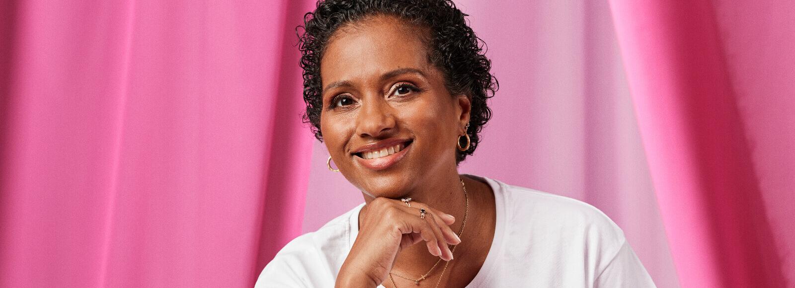 Aida is te zien in de campagne rondom de Pink Ribbon Omarmband van 2022.